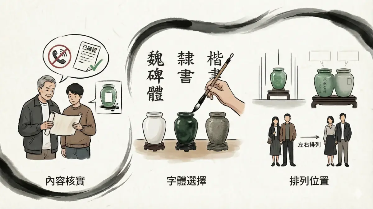 1. 內容核實(最關鍵|骨灰盅刻字內容校對):