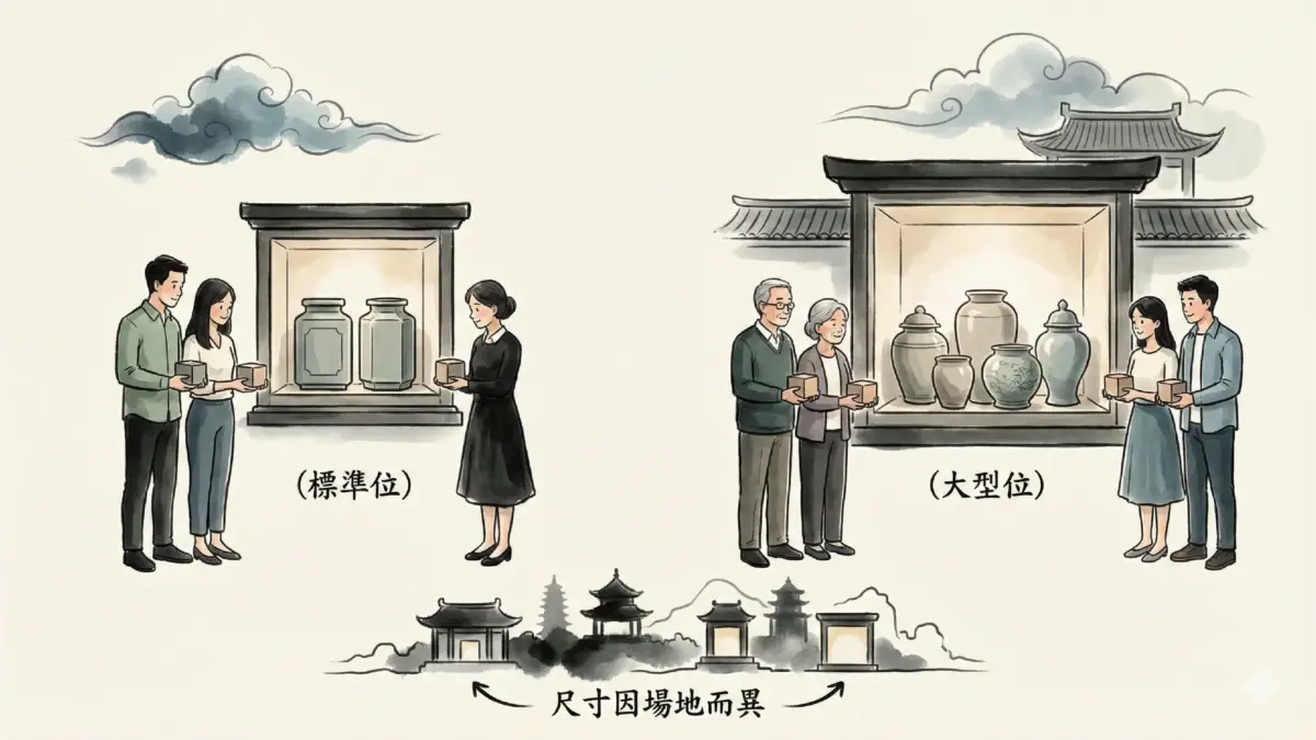 步法3 公營龕位「標準/大型」概念與注意(尺寸因場地而異)